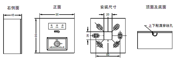 接線盒DH75或DH86預(yù)埋在墻體內(nèi),利用底板上穿線孔進(jìn)線與接線端子連接,底板用兩個 M4 的螺釘固定在接線盒的兩個螺紋孔上。底板上端有敲漏孔供從墻壁向下走線用。