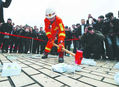 14日,福州市集中銷毀假冒偽劣消防產(chǎn)品。游慶輝 容肖攝