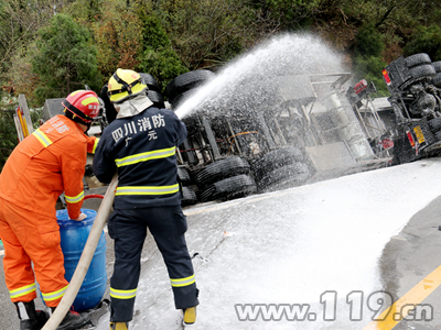 33噸油罐車側(cè)翻泄漏 廣元消防鏖戰(zhàn)13小時(shí)處置