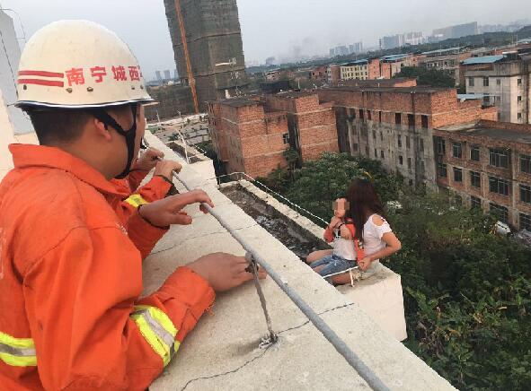 4月12日下午,在南寧市羅文大橋橋北附近西明村一棟居民房,有一名年輕女子因家庭糾紛,一時想不開,竟抱著自己3歲小孩欲跳樓。南寧市消防部門立即趕到現(xiàn)場救人。經(jīng)過消防官兵半個小時的努力,-終將母子倆救下。
